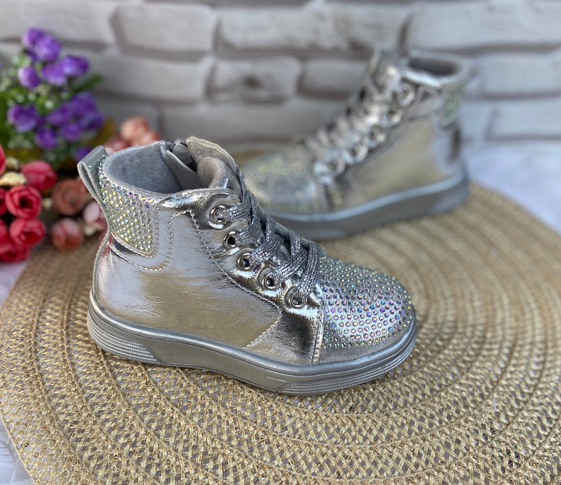 ПОСЛЕДНИЙ РАЗМЕР В наличии Верх-экокожа Украшены стразами Внутри утеплены плюшем Стелька кожаная с супинатором Фиксация- шнуровка,Сбоку молния 29-18 см Цена 575 Новая Цена 399