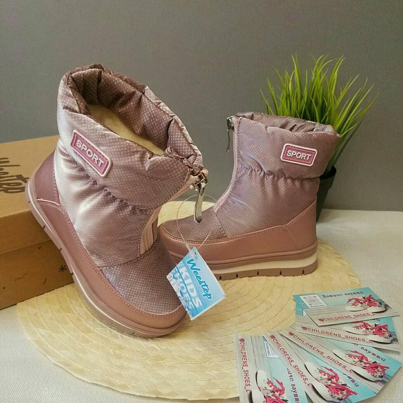 Зимові чобітки для дівчинки Weestep. Теплі та легенькі. Верх екошкіра та водо-вітронепроникна тканина. Всередині набивна овчина. Дуже красиві. Колір - пудра. Доступні в розмірах : 28 - 18 см