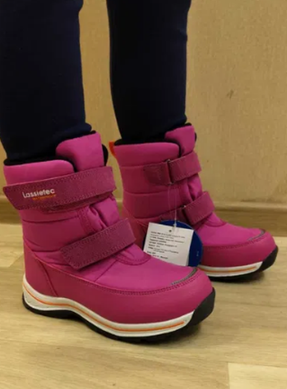 Зимние сапоги для детей Lassietec®; Розміри 22 2299 грн Розміри 23-35 2499 грн Температурный режим до -30С Водонепроницаемая зимняя обувь; Верх из синтетического материала и текстиля; Подошва из термопластичного каучука обеспечивает хорошее сцепление с поверхностью; Водонепроницаемая конструкция с герметичными вставками и подкладкой из искусственного меха; Съемные стельки; Застежки на липучках обеспечивают простоту использования; Светоотражающие детали Довжина устілки від краю до краю 22 розмір 14 см 23 розмір 14,8 см 24 розмір 15,6 см 25 розмір 16,3 см 26 розмір 17 см 27 розмір 17,7 см 28 розмір 18,4 см 29 розмір 19,2 см 30 розмір 19,6 см 31 розмір 20,5 см 32 розмір 21 см 33 розмір 21,7 см 34 розмір 22,4 см 35 розмір 23 см