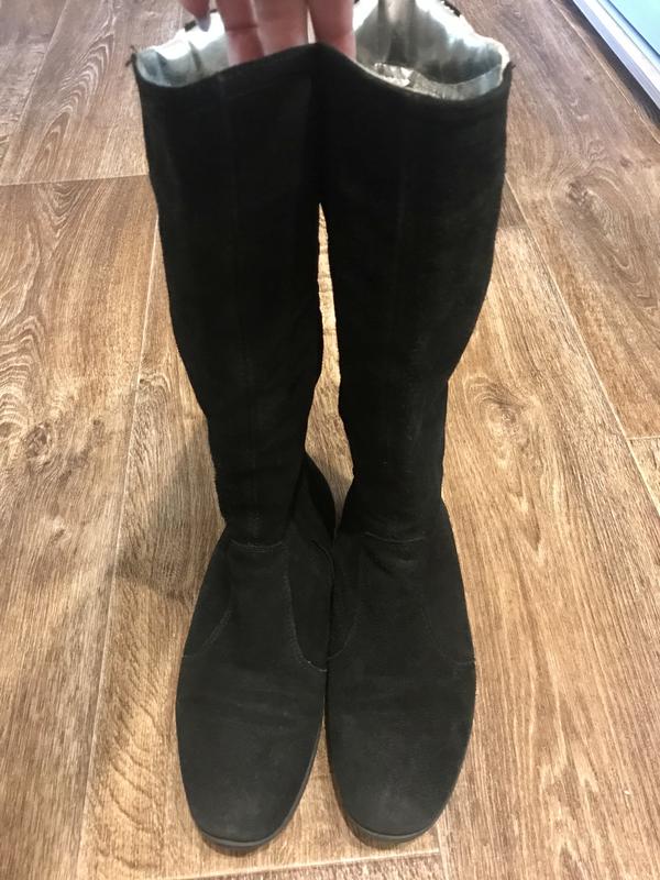 Продам сапожки 36 размера, 23,5 см. Натуральная замша, кое-где есть потёртости на серебристых вставках из кожзама. Молнии рабочие. В середине на флисе. Состояние очень хорошее.