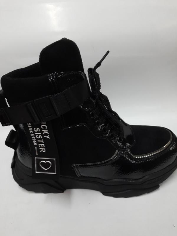 черевики комбіновані - лак+ замша, всередині хутро і фліс, розм.32,33 35,36