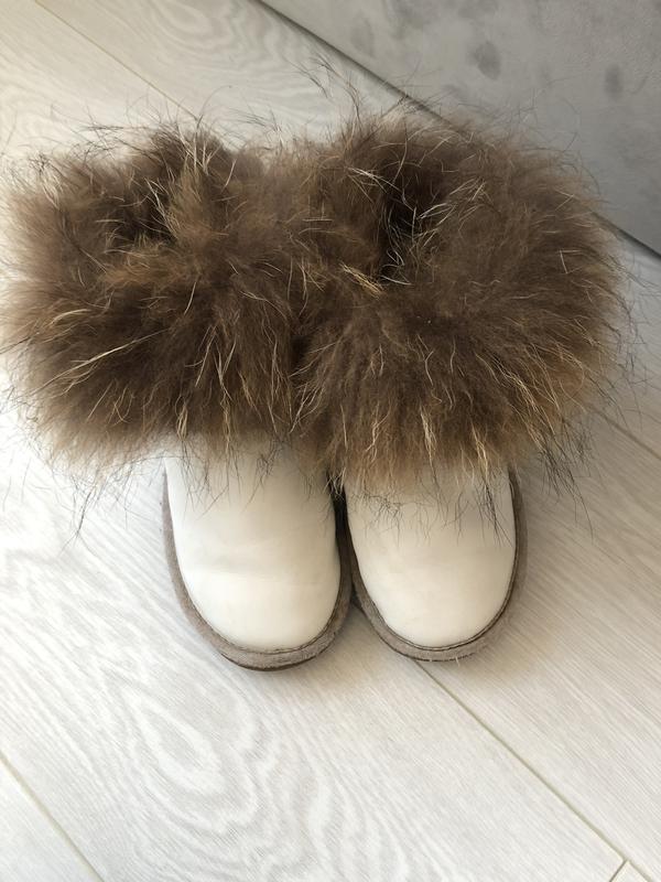 Угги зигатуральної шкіри ,утеплені з середини Мех натуральний єнот Стан хороший без дефектів Розмір 34