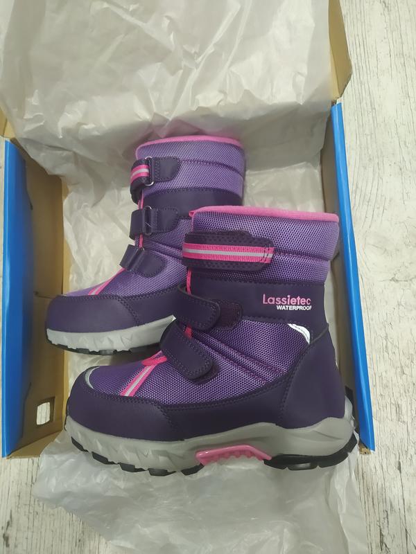 Зимние сапоги для детей Lassietec®; Розміри 22 2299 грн Розміри 23-35 2499 грн Температурный режим до -30С Водонепроницаемая зимняя обувь; Верх из синтетического материала и текстиля; Подошва из термопластичного каучука обеспечивает хорошее сцепление с поверхностью; Водонепроницаемая конструкция с герметичными вставками и подкладкой из искусственного меха; Съемные стельки; Застежки на липучках обеспечивают простоту использования; Светоотражающие детали Довжина устілки від краю до краю 22 розмір 14 см 23 розмір 14,8 см 24 розмір 15,6 см 25 розмір 16,3 см 26 розмір 17 см 27 розмір 17,7 см 28 розмір 18,4 см 29 розмір 19,2 см 30 розмір 19,6 см 31 розмір 20,5 см 32 розмір 21 см 33 розмір 21,7 см 34 розмір 22,4 см 35 розмір 23 см