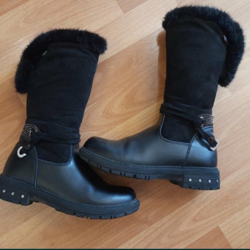 Шкіряні зимні чобітки.Стан хороший,на стопу 22см.Дефект на останньому фото