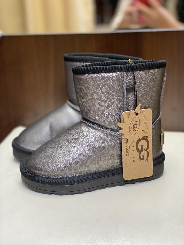 Кожаные Уги, с овчиной внутри.цвет красивый графитовое серебро. Подошва не скользкая. На подошве указан размер и длинна в см. Размеры: 27-18,5 см 28-19 см 29-19,5 см 31-20,5 см 32-21 см 34-22 см