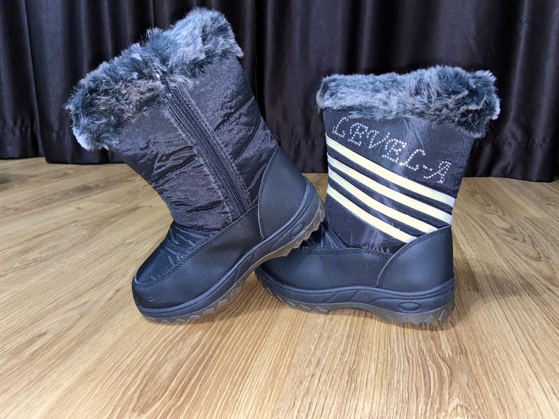 Дутіки чорного кольору із білими полосами по боках! Верх штучне хутро сірого кольору, підошва гума! В середині штучне хутро, тепле. За необхідності скину додаткові фото та заміри. Відправлю