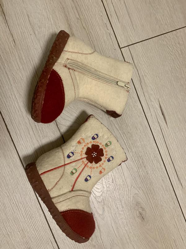 Класні стильні легкі, теплі , гарні Зимові валянки. Найкраще зимове взуття. Носили в сніг і лютий мороз. Завжди на тонкий носочок. Одягали лише 1 сезон. Без недоліків. Без нюансів. Довжина підошви 17 см. Думаю, устілка 16-16,5 см.