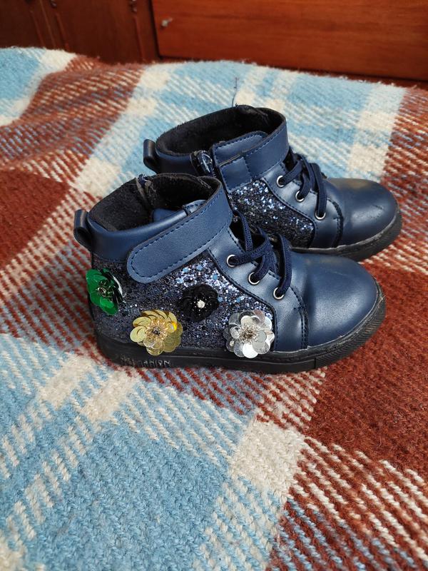 ботіночки темно синього кольору 27 розмір. збоку є замочок і спереду можна застібати на липучку. носилимя один сезон, в гарному стані