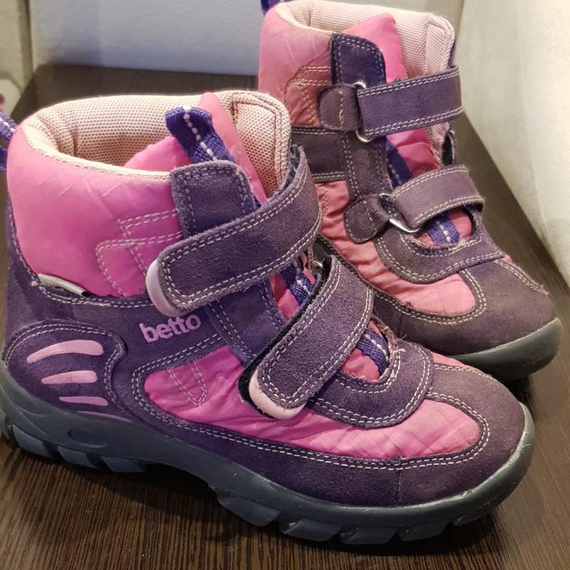 Гарні теплі чобітки Betto для дівчинки розміру 33. Все ціле, внутрішні п'яти також. На липучках. Замша з плащівкою. Стелька 21 см.