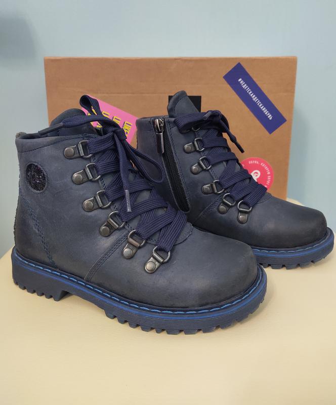 Кожаные ботинки в идеальном состоянии. Взвались два раза. Верх - натуральная мелкая кожа, изнутри - натуральная овчина. Размер - 31, длина стельки 20 см. Ортопедическая подошва. На узкую и среднюю полноту ножки. Рекомендуем брать с запасом не менее 1 см. Стильные и хорошо смотрятся на ножке. На дополнительные вопросы ответь.