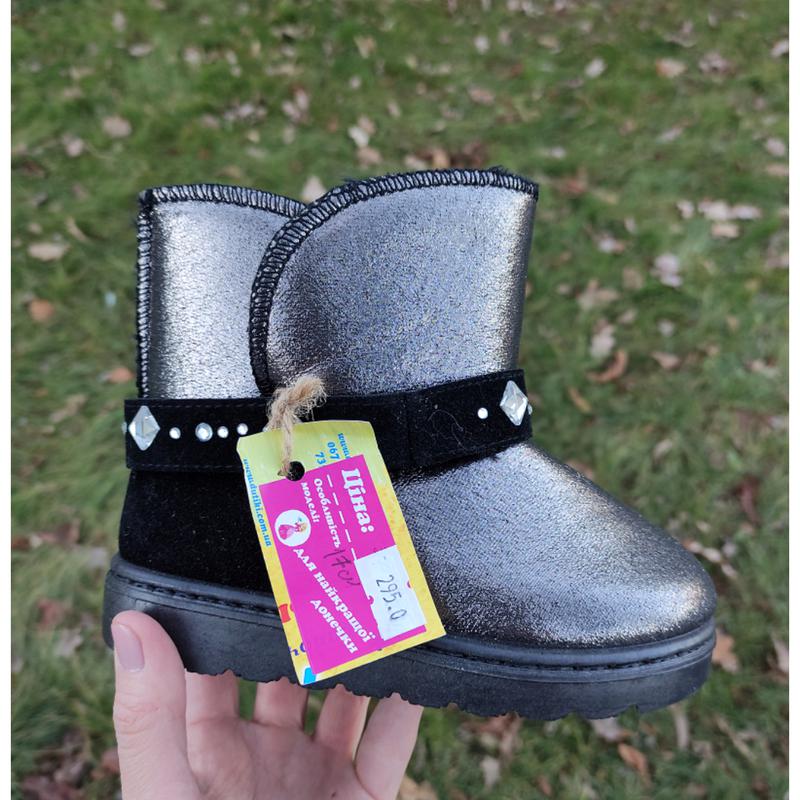 Сріблясті уги з композитного матеріалу, утеплені штучним хутром. ✔️ ідеальні на холодну осінь, теплу зиму (сезон єврозима) ✔️ в моделі м яка, гнучка підошва ✔️ знімні елементи декора 26 розмір-17 см 27 розмір-18 см ___________________________ 👟 В наявності більше 5000 пар взуття 🚀 Швидка відправка 👌 Обмін /повернення