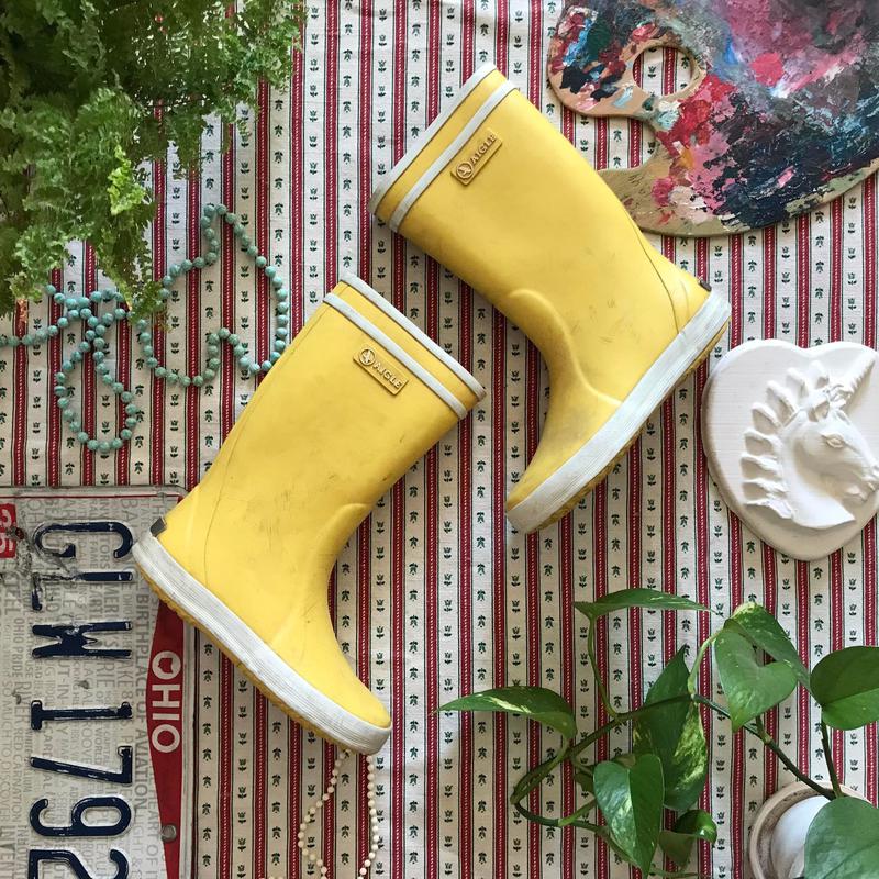 Желтые резиновые сапоги Aigle размер 31 стелька 20 см. Полностью соответствуют фото, присутствуют потертости. Не текут. Высота 24 см.