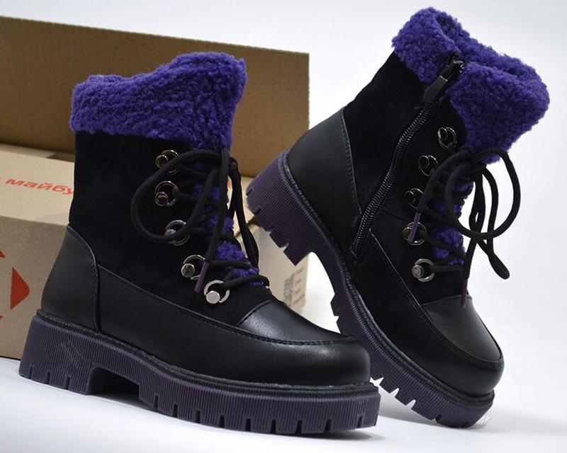 Матеріал верху - еко-шкіра. Всередині утеплені шерстю. Шерсть густа, змішаний склад. Шнурівка декоративна. Плюс зручна застібка-блискавка. Легка протекторна підошва. Забезпечує чудове зчеплення з поверхнею. Розмірна сітка: 32р. по устілці 21,0 см 33р. по устілці 21,5 см 34р. по устілці 22,0 см 35р. по устілці 23,0 см 36р. по устілці 23,5 см 37р. по устілці 24,0 см