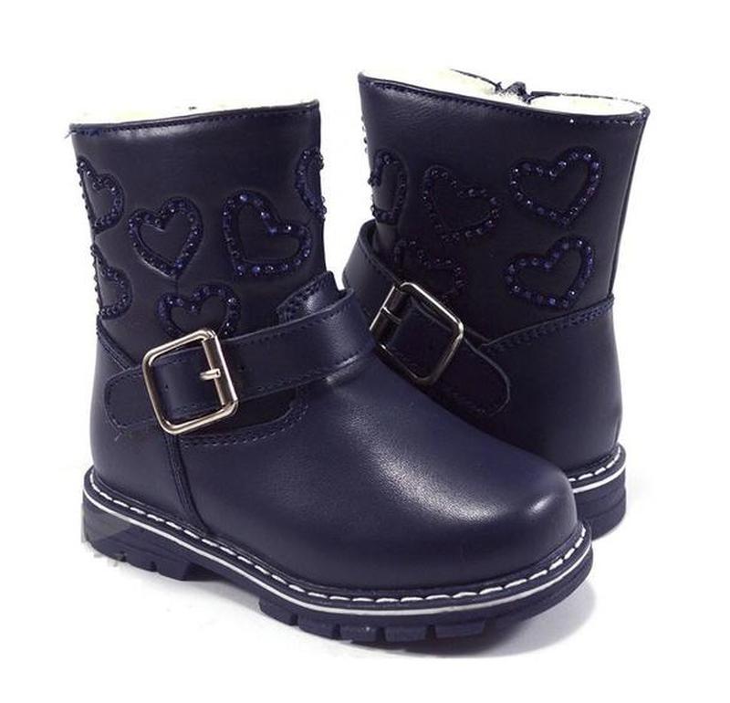 Размер 23 (15) см Зимние детские ботинки для для девочки. Красивые и теплые, утеплитель натуральная овечья шерсть Стелька съемная, утепленная. Сапожки застегиваются на молнию .Украшение - сердечки, пряжка декоративная. Красивый дизайн, рифленая подошва.
