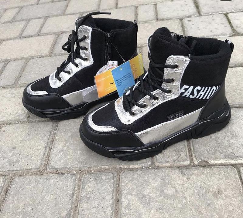 Верх эко кожа, высокая и легкая подошва, есть шнуровка и молния, утепленные овчиной 36-23,5 см стелька