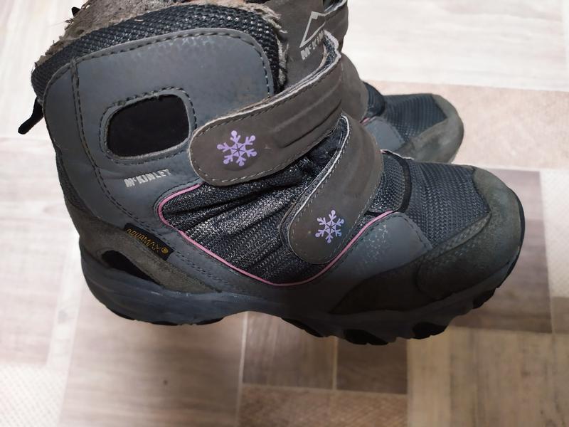 отличные ботиночки для девочки .цвет как на фото .верх кожа и водоотталкивающая ткань .внутри мех им теплый текстиль .на двух прочных липучках .р 33 по стельке 20 см состояние без ньюансов оплата и почта любые