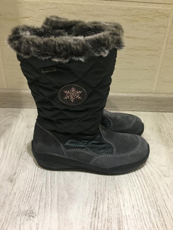 Термосапоги Cortina, размер 35, стелька 22,5см. Верх - натуральная замша и водонепроницаемая мембрана, внутри утеплены искусственным мехом.