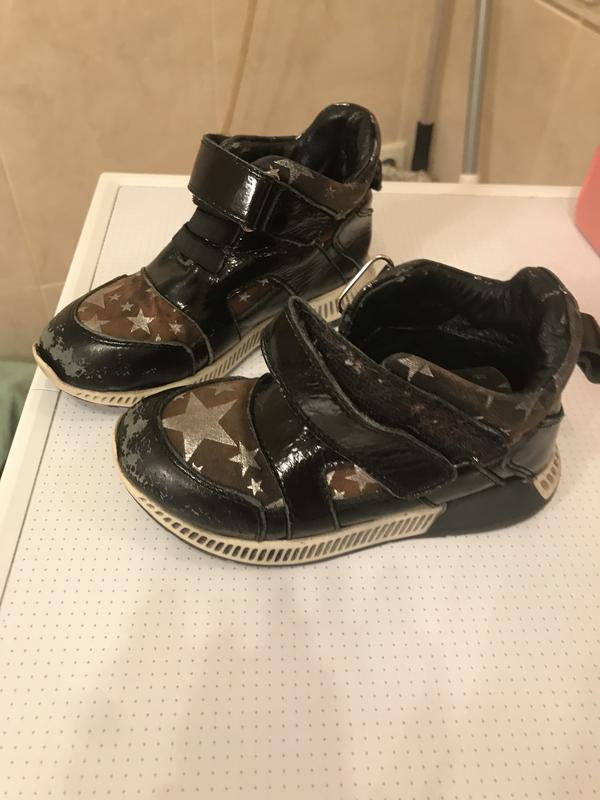 Детские ботинки на девочку на липучках, осень-тёплая зима. Очень удобные, носки конечно потертые, но на каждый день бегать на детск. Площадках вполне нормально. Размер 28