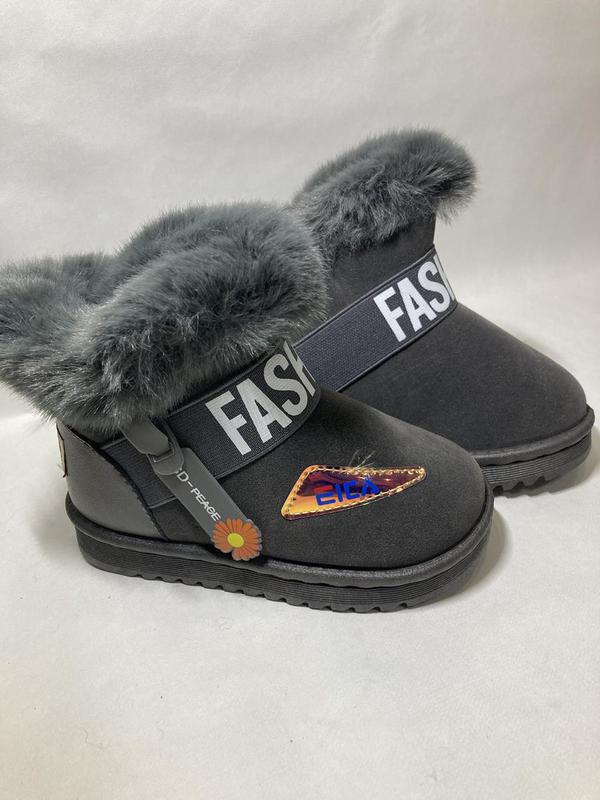 Дитячі модні уггі на хутрі .Матеріал верху еко замш .Утеплювач-хутро [цигейка].Підошва: ПВХ. Верх халяви-натуральне хутро. Висота підошви 2см. Дуже теплі і зручні Розміри: 25р.15,5см. 1шт 26р.16см. 2шт 27р.16,5см. 1шт 28р. 17см.2шт 29р.17,5см. 2шт 30р.18см. 2шт