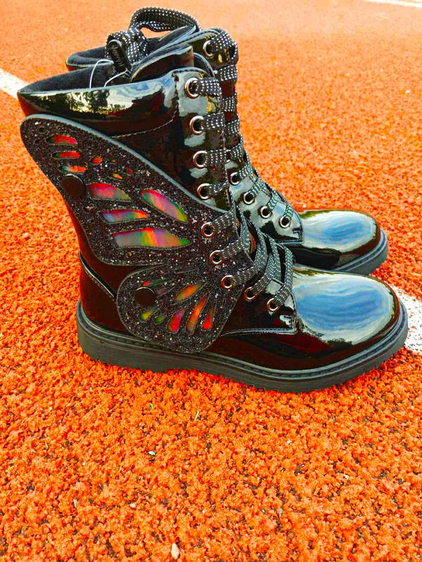 демісезоні чоботи лакові на дівчинку. Дуже стильні. Крильця з'ємні. В середині утеплені флісом. також утеплена устілка