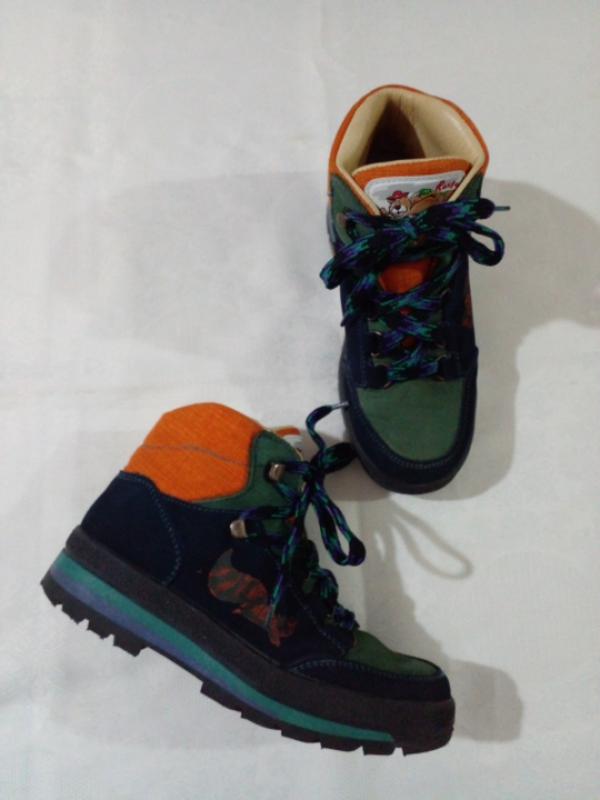 Обувались несколько раз. Внутри все кожа,верх специальный непромокаемый текстиль и нубук,толстая подошва,стелька съемная, можно на холода вставлять теплую. Размер указан 35 стелька от края до края-22 высота ботинок-12-13,5 ширина подошвы-9 подошва в районе каблука-3,5, спереди -2,5 утеплены термопрокладкой