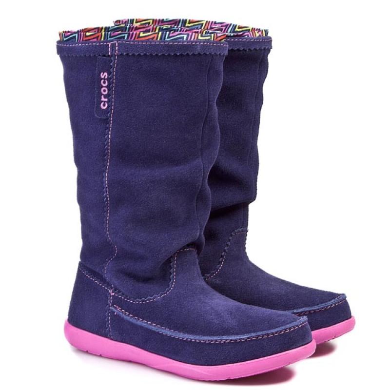 Аккуратные ботинки бренда crocs. голенище прикрывает ногу, сделано из натураль