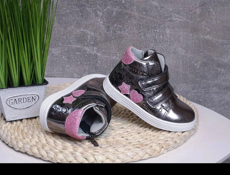 Шикарні демі черевики для дівчаток від ТМ Clibee. Дуже гарний дизайн неодмінно сподобається Вашій принцесі. Верх-еко-шкіра. Без утеплювача. Устілка шкіряна з супінатором. Фіксація 2 липучки +бічна блискавка. Жорсткий задник для хорошої фіксації ніжки. Легкі і зручні. Розміри : 21р-13,6 см 22р-14, 2см ✅✅Ціна 515