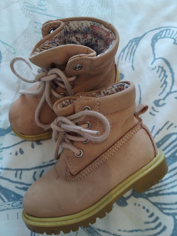 Демисизонные или на теплую зиму ботинки из натуральной кожи пудрового цвета.Подклад- яркий текстиль. Замеры: стелька-14-14,5 высота-10см