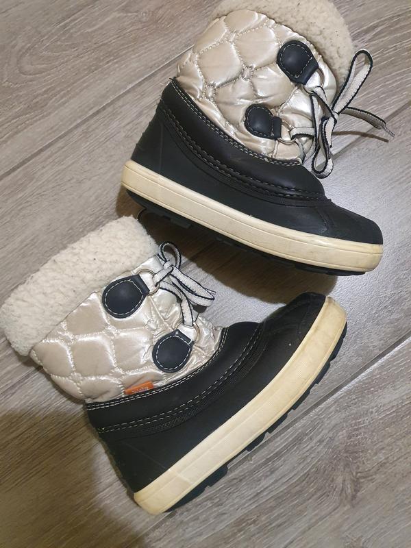 чобітки у доброму стані, дуже тепленькі. по сітці виробника на стопу 16.5, по устілці 17.5. заміряти не можу, устілка не виймається, як суцільний валеночек. нюансів немає. шкарпетки прогумовані.