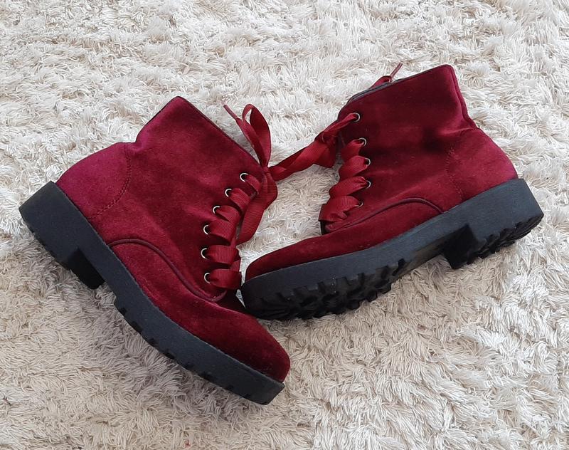 Демисезонные сапожечки ботинки фирмы M&S ,32 размера,стелька 19 см.Состояние отличное.Материал верха бархат в бордовом цвете.