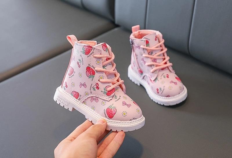 Стильные деми ботинки клубнички. ✏ Внутри флис. Размеры в наличии: ✅ кид син Размеры/стелька 21 - 13,5 см 22 - 14 см 23 - 14,5 см 24 - 15 см 25 - 15,5 см допустимая погрешность в замерах +- 1,2