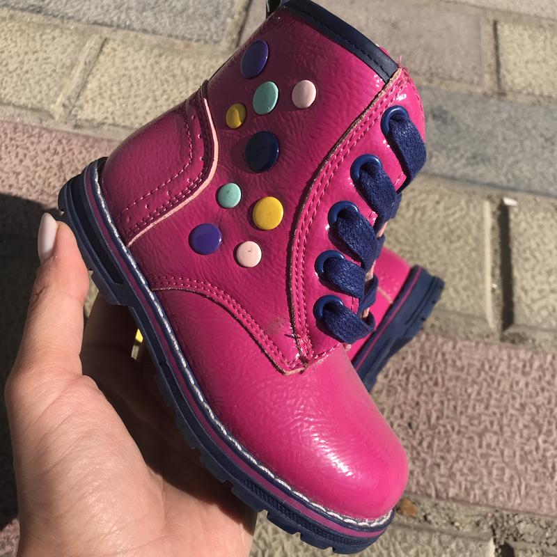Верх лак, всередині фліс, устілка шкіряна з супінатором, є шнуровка і блискавка, устілка 14,5 см