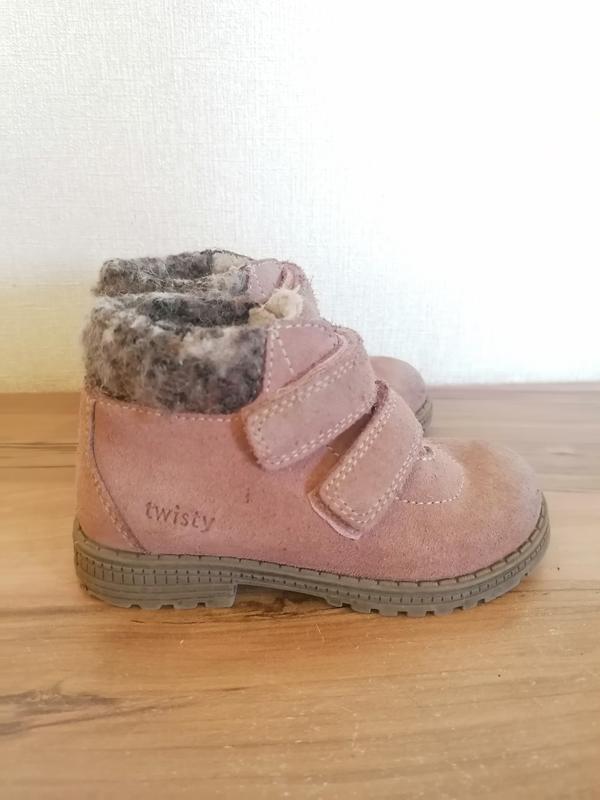 Зручні, легкі черевички twisty із замшу, 23 розмір. Устілка приблизно 14-14,5 див. (не виймається). Мають тонке уеплення. Стан дуже хороший, єдиний нюанс - колір на носиках замші трохи темніший (не кидається в очі)