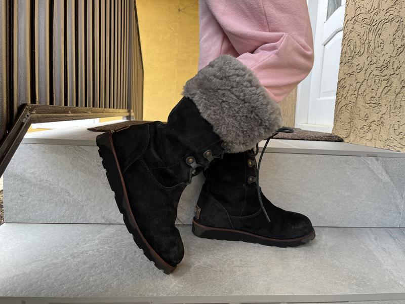 Сапоги ugg! Кожа внутри и снаружи! Состояние как новые! Мех плотный! Даже шнурки кожаные! Потертостей нет! Высота 28см Написан размер 36, я бы сказала 34-35 из-за толстого меха!