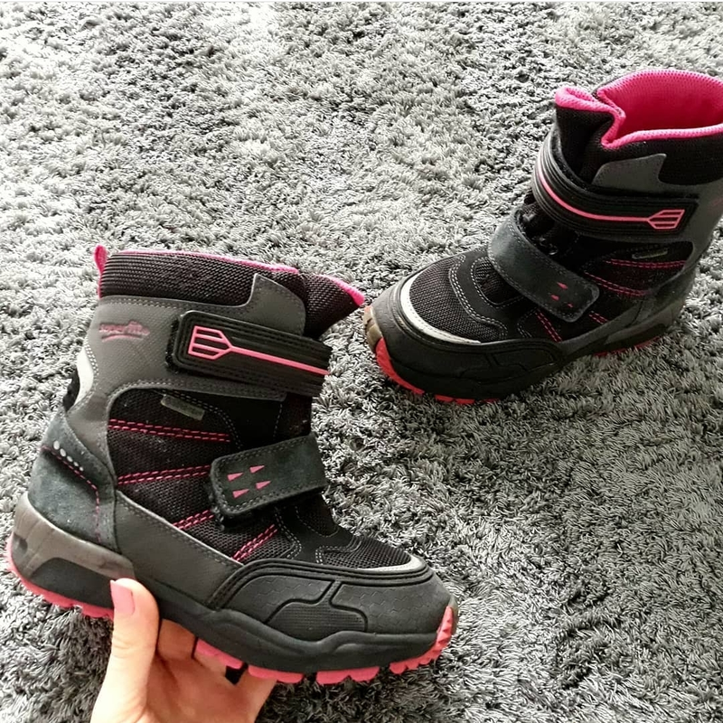 Качественные очень удобные ботинки Supefit. На липучках, легко обувать. Не промокают. Состояние хорошее, липучки крепкие, подошва идеальная, есть потертости, на фото всё видно. Носила моя дочка.кроме незначительных потертостей на носочках. Размер 31, подойдут на ножку 19,5-20 см Стелька не вынимается, чтоб померять. По подошве длина 22 см.