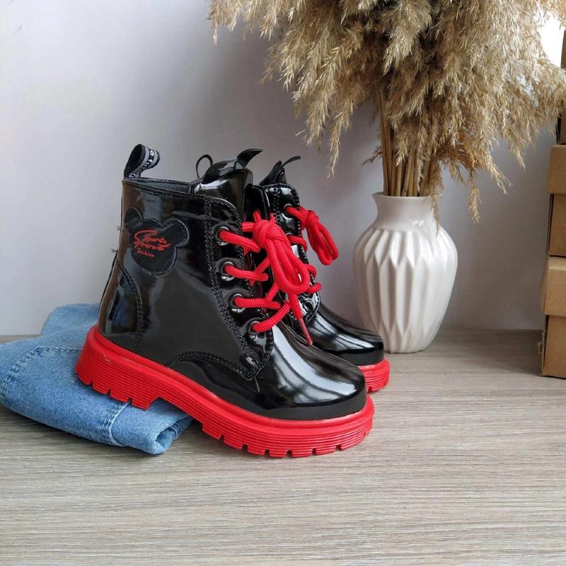 Яркие деми ботиночки ❤🖤 Верх лак Внутри микрофлис Стелечка кожа Фиксация шнуровкой и боковой молнией 22 -13,5 см 23 - 14,0см 23 - 14,0см 24 - 14,5 см 24 - 14,5 см 495 грн 30 - 18,0 см 30 - 18,0 см 30 - 18,0 см 585 грн