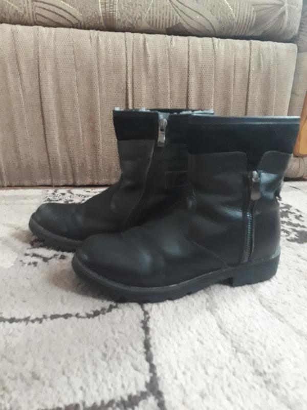 Довжина устілки 23.5 см Блискавки функціонують. Чоботи потребують фарбування або покриття кремом. Верх шкіра, замш. Утеплювач штучне хутро.