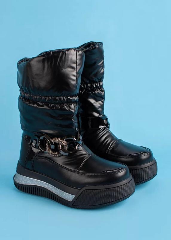 Колір - чорний Материл верху - штучна шкіра, плащівка Утеплювач - хутро Підошва - ПВХ Застібка - змійка Дод. інформація - Висота підошви - 4см, висота сапога - 24 см Розмірна сітка: 32-37 розмір Заміри по устилці: 32 розмір 20,5 см 33 розмір 21 см 34 розмір 21,5 см 35 розмір 22 см 36 розмір 22,5 см 37 розмір 23,5 см