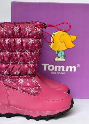 Зимние дутики ТОМ.М Верх комбинация искусственной кожи и термоплащевки, не промокают, держат тепло. Застегиваются на молнию. Вверху - защита от попадания снега - регулируется резинкой. Подойдут на любую ножку и подъем. На ножке смотрятся очень аккуратно и красиво! 27 р. - 17,5 см