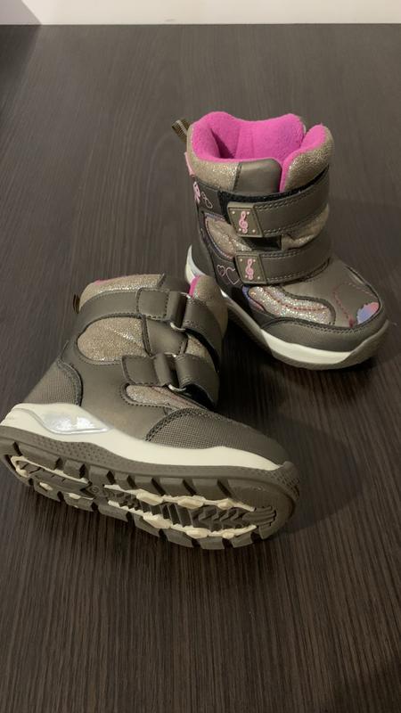Тёплые ботинки. Состояние отличное. Размер указан 23. Один задник немного стёрт(на фото видно). Сбоку небольшие потёртости на подошве. Липучки отличные. Утеплитель не стёрт, дырок нет. Не текут не промокают