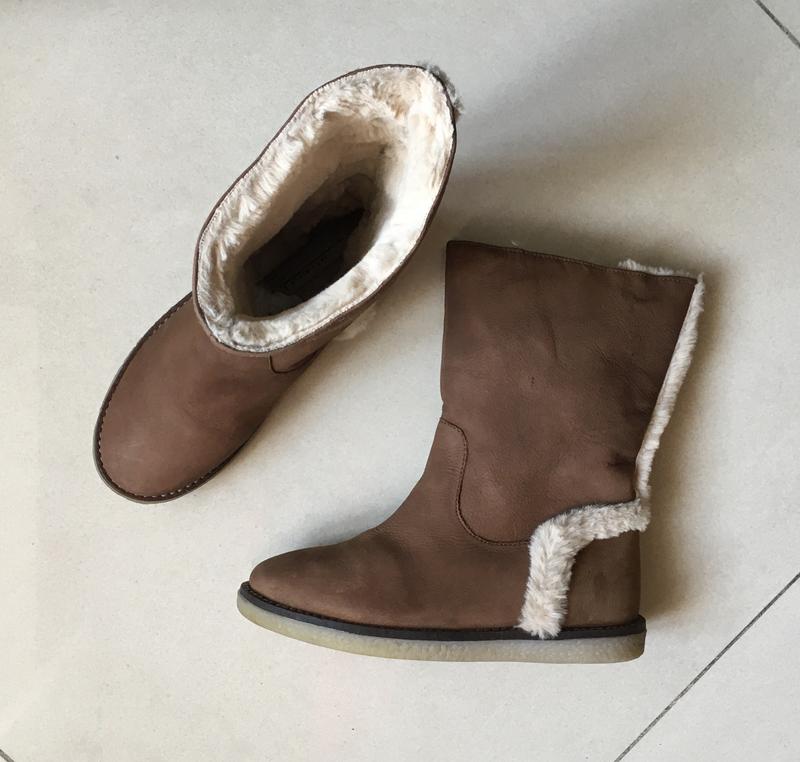 Оригінальні зимові чоботи італійської фірми ZARA у відмінному стані. Made in India. Підошва з поліуретану. Носили дуже мало (дивіться фото підошви і середини). СУПЕР модні та зручні чоботи.
