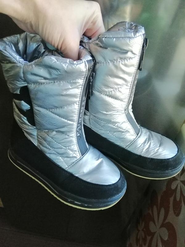 Теплые зимние серебряные дутики. Ребенок отходил 1 сезон, очень емузен. Удобные, легкие и теплые. 32р. - 20см. Имеется нюанс - 2 последних фото.