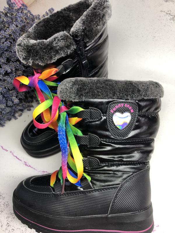 Нові зимові чобітки від Cool club (Польща). Густе хутро всередині, дуже теплі, досить товста підошва, яскраві шнурки, під блискавкою захист від попадання снігу. Дуже круто виглядають на ніжці. Розмір 28, маломір устілка 16,5 на 26 розмір супер Виробник: ТМ Cool Club Колір: Чорний