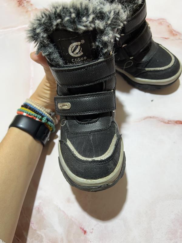 Материал верха: искусственная кожа Материал внутри: искусственный мех Материал подошвы: полимер Производитель: Clibee. Удобны две липучки. Застежка-молния/замочек.Протекторная подошва. Обеспечивает отличное сцепление с поверхностью. Размер 26(17 см). Цвет темно синий, фото не передает.