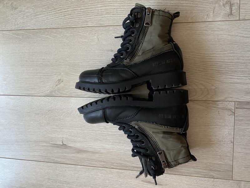 Фото на тілі нема Носики округлені Застібається на замки з двух боків Платформа низька тракторна Сліди носіння незначні Підійде на розмір 29-31 Стелька 20 см) Висота ботінка 14 см) Ширина підошви 9 см) Продається так як є без повернення