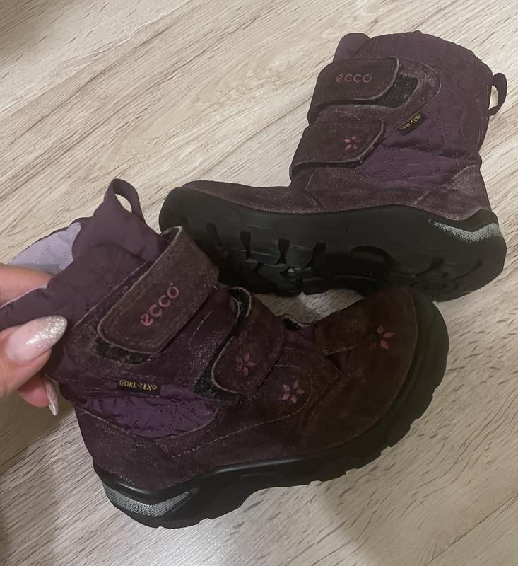 Натуральні термо чоботи Ecco 28 р., теплі, не промокають. Технологія gore-tex. Бу. Стан гарний, без дефектів. Стелька до виямки 17,5 см, повністю 18,2 см.