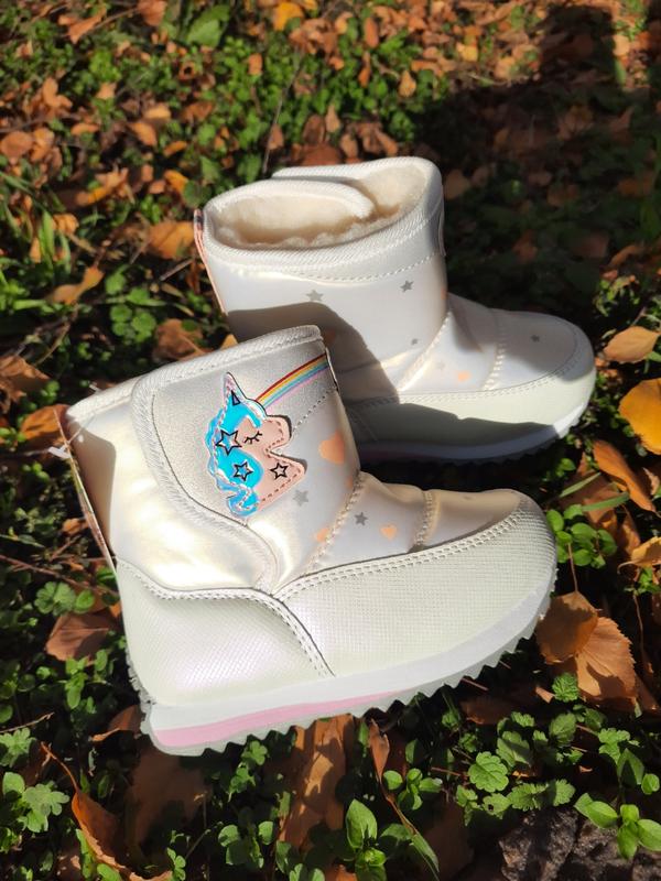 Зимние дутики высокого качества. Очень тёплые. ✔️ Внутри 60% натуральный мех. ✔️Широкая липучка. ✔️Водонепроницаемая перламутровая обувная плащевка и искусственная кожа. ✔️ Легкие и гибкие. ✔️ Переливаются и завораживают взгляд. Размеры: 25 – 16.1 см, 26 – 17.1 см❌️