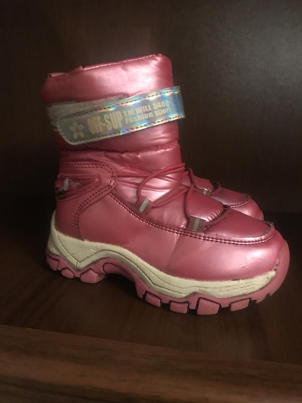 Продам зимові дутики дуже теплі, не промакають. Стан хороший. Розмір 26. На внутрішній стороні на обох чобітках є маленький недолік трішки тріснув замінник. В носінні це непомітно, дірки немає тільки тріщинки, вказала на останньому фото. Дутики гарно носяться та не промокають, ніжки завжди були сухими.