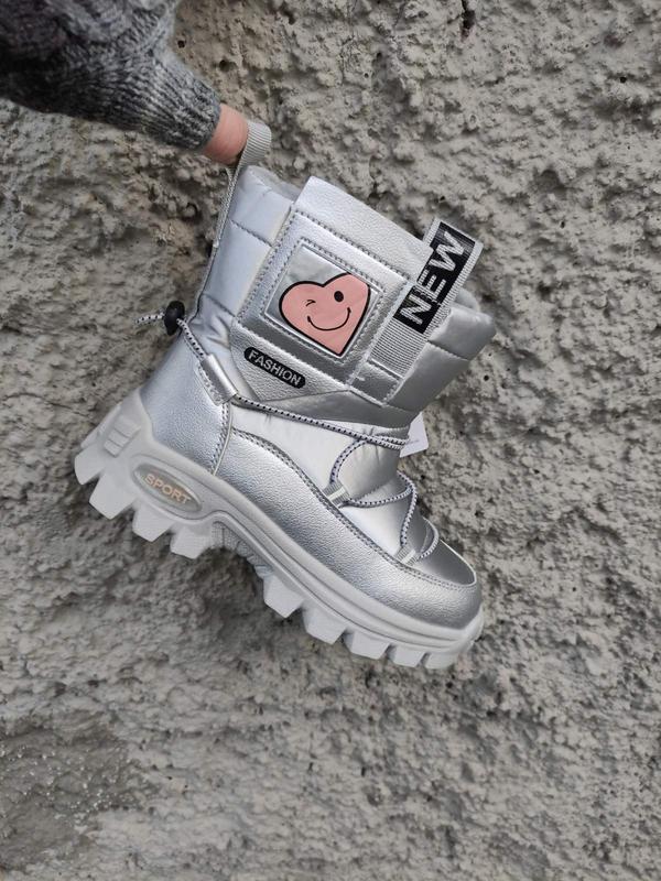 Зимові термо чобітки для дівчаток в красивому срібному кольорі ❄️ Зовні : вітронепронекний вологостійкий термотекстиль високої щільності ❄️ Утеплювач : напіввовна (щільне хутро з вмістом вовни 70%) ❄️ присутній боковий замочок ❄️ практичне кольорове виконання, пасуватимуть до будь-якого одягу ❄️ полегшена об'ємна підошва з добре вираженим протектором ❄️ носочок і п'яточка виконані з екошкіри зносостійкими накладками Розмірна сітка по даній моделі: Розмір Довжина устілки: 32 = 20,5см 33 = 21см 34 = 21,5 см 35 = 22 см 36 = 23 см 37 = 23,5 см ___________________________ 🐝 Офіційно працюємо з 2010 року 👟В наявності більше 3000 пар взуття 🚀 Швидка відправка 👌 Обмін /повернення