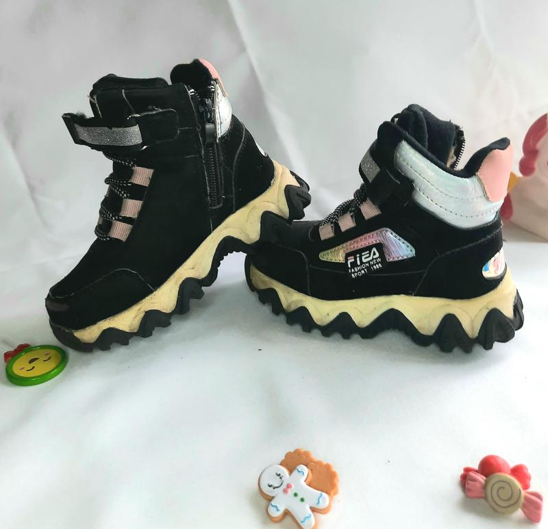 Чобітки в гарному стані(трішки потерті спереду), дуже теплі. Засьигаються на молнію та липучку. Підошва товста та гнучка. Розмір 25